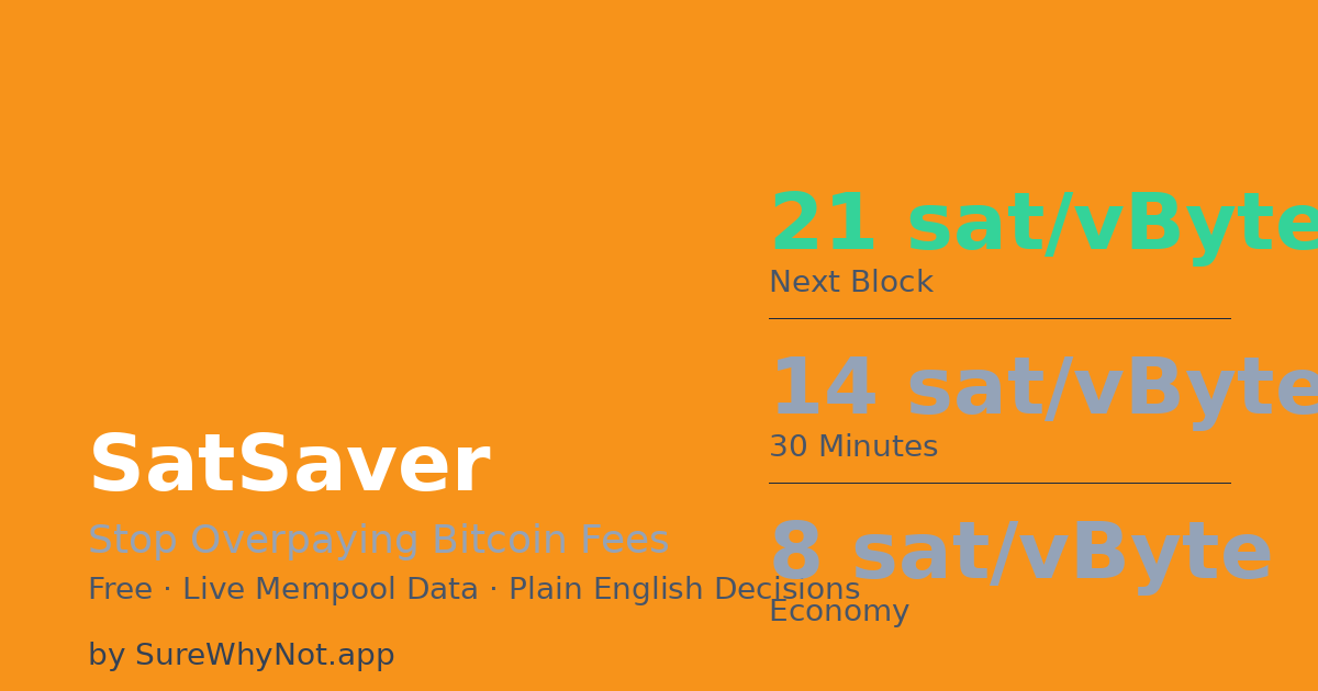 SatSaver tells you exactly when to send Bitcoin and how much to pay — in plain English. Real-time mempool data turned into clear decisions.
